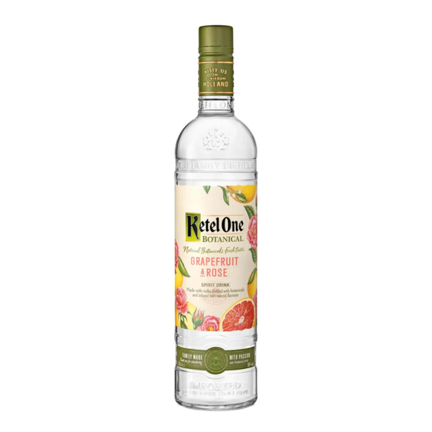 Ketel One have married grapefruit and rose in this vodka-based botanical spirit drink, made by infusing Ketel One vodka with natural botanicals, and then re-distilling the infusion. Then it’s infused with natural grapefruit and rose essences.