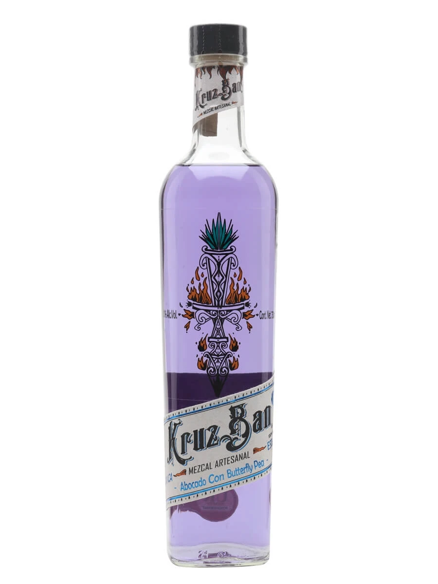 Made in the town of San Carlos Yautepec, Oaxaca, this espadin mezcal from Kruz Ban has been flavoured with the ‘Butterfly Pea’ plant, also known as Clitoria Ternatea, that has long been used in oriental teas and cuisine for its medicinal properties. This flavoured mezcal gives out notes of forest flowers, cooked agave, and sweet spices and fruits that work well in experimental cocktails.