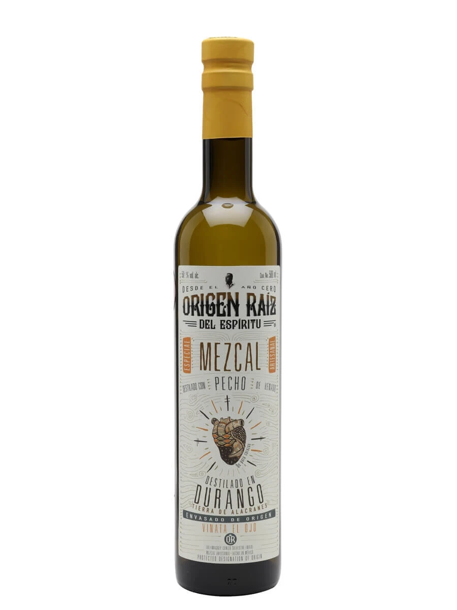 A fruity mezcal with gamey undertones, Origen Raiz del Espiritu Pechuga is a limited-edition mezcal distilled with a combination of seasonal fruits and wild venison suspended in the still. The palate offers notes of pineapple, juniper, spice and rich gamey meat that linger in the finish.